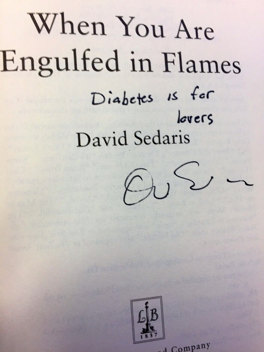 Here's an inscription he wrote in my copy of When You Are Engulfed in Flames.